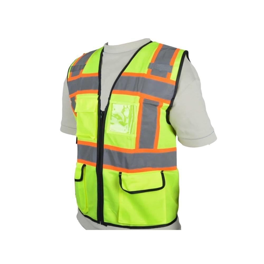 سترة اصفر خطوط برتقالي 4 جيوب وكرت