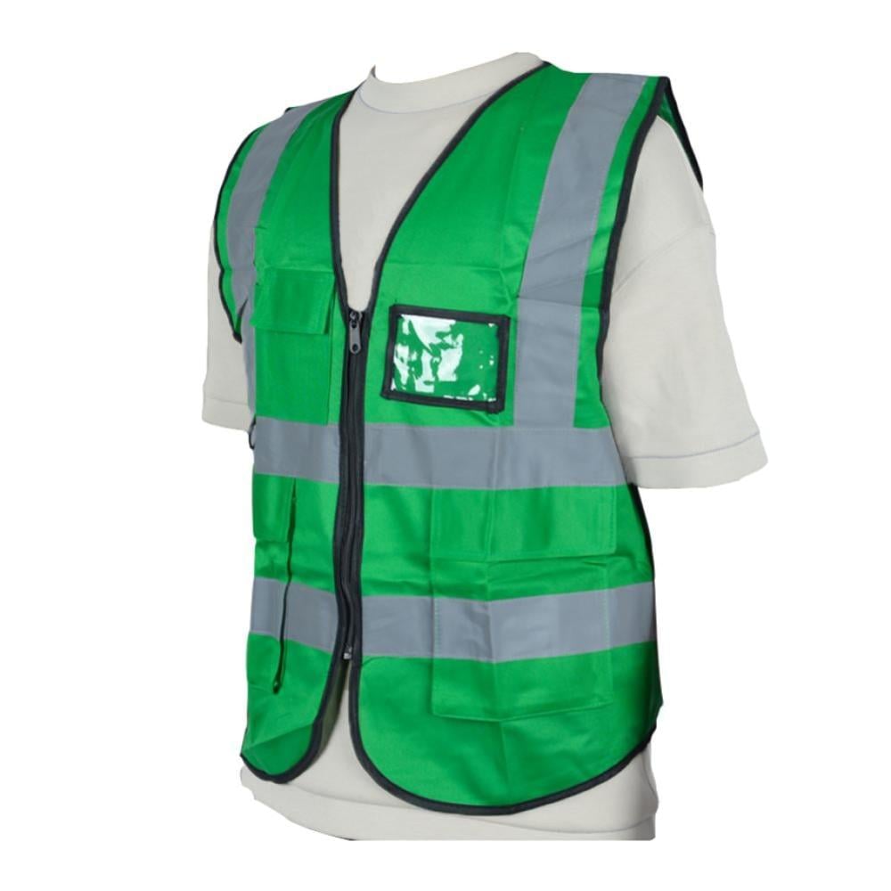 سترة سلامة عاكس ثقيل اخضر 3 جيب وكرت